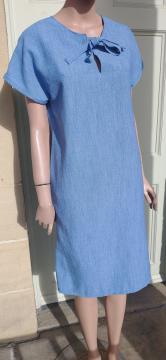 1970s handmade? denim colour blue shift dress tie front short sleeves UK size 12-14