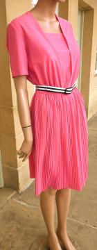 1980s ST MICHAEL hot pink short sleeve dress pleated skirt "liquorice" style black/white belt UK size 10-12