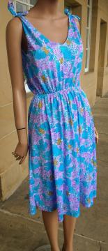 1980s BLEYLE label Italian made plunge v-neckline sun dress tie bow straps purple/blue/pink floral print UK size 10
