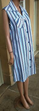 1970s ST MICHAEL long sleeveless white pinafore style shift dress blue pin stripes UK size 12-14